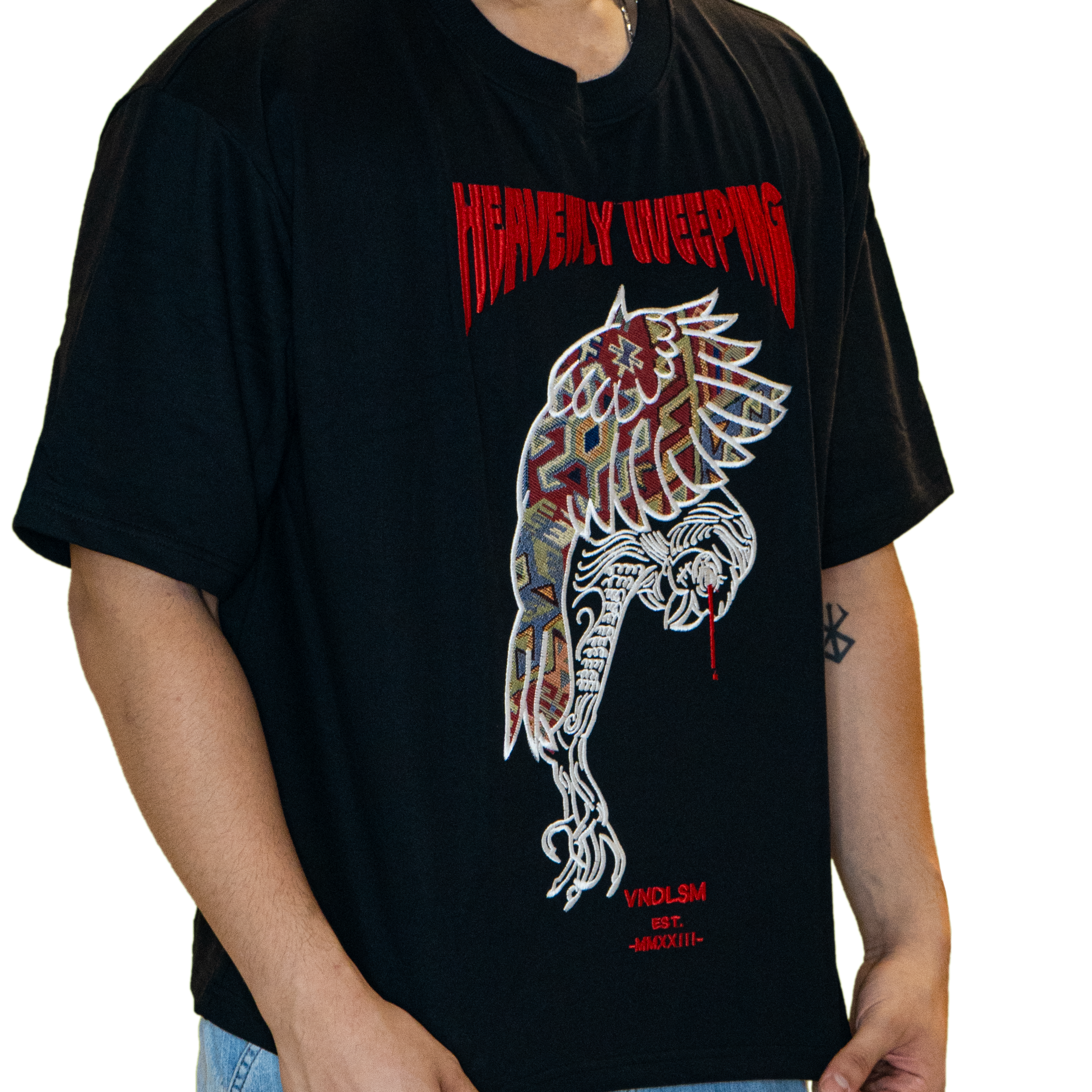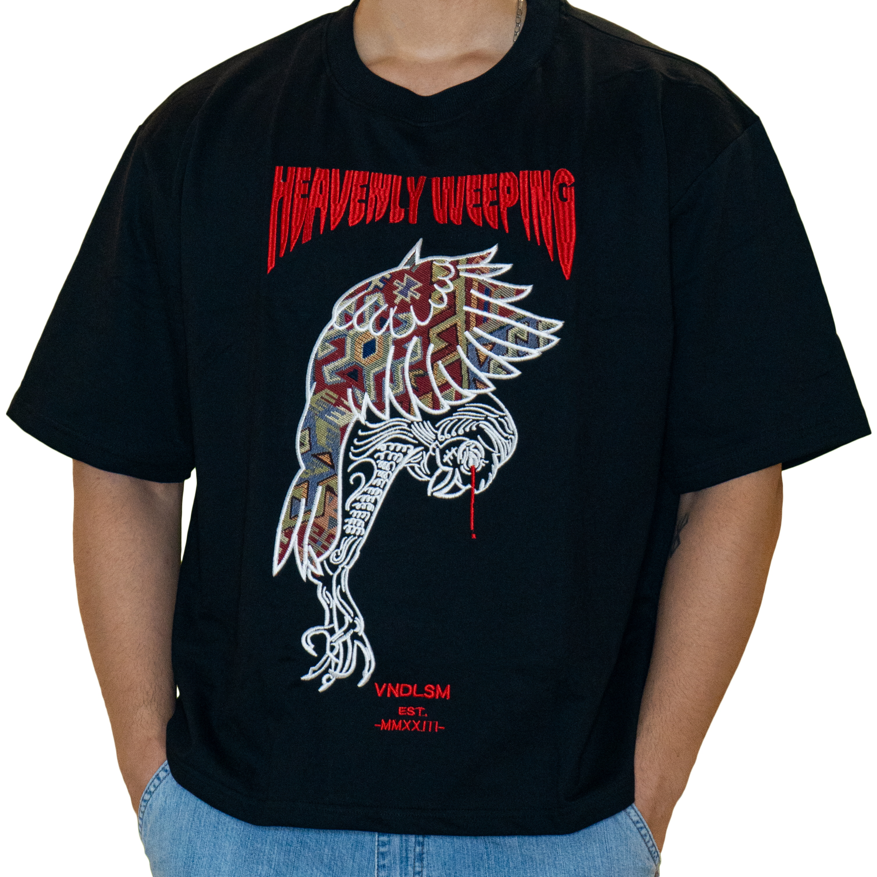 The Heavenly Weeping T-Shirt symbolizes the status of art in contemporary society. The image of the crying bird depicts the gradual demise of artistic freedom, affected by factors such as the commercialization of art. The phrase “Heavenly Weeping” conveys the notion that the divine act of creating art is being undermined, as people increasingly prioritize profit over artistic expression.